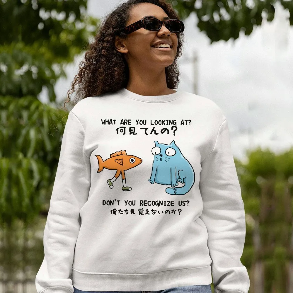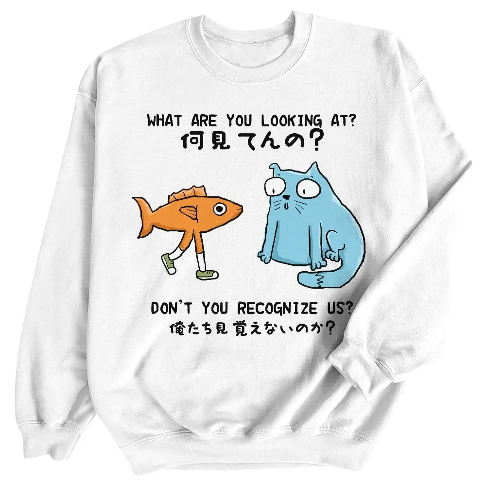 Blue Cat And Orange Fish Homie Kawaii Japanese (2) Sweatshirt
