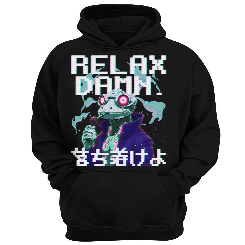 Relax Damn Animal Japanese Grey Frog Cyberpunk Hoodie
