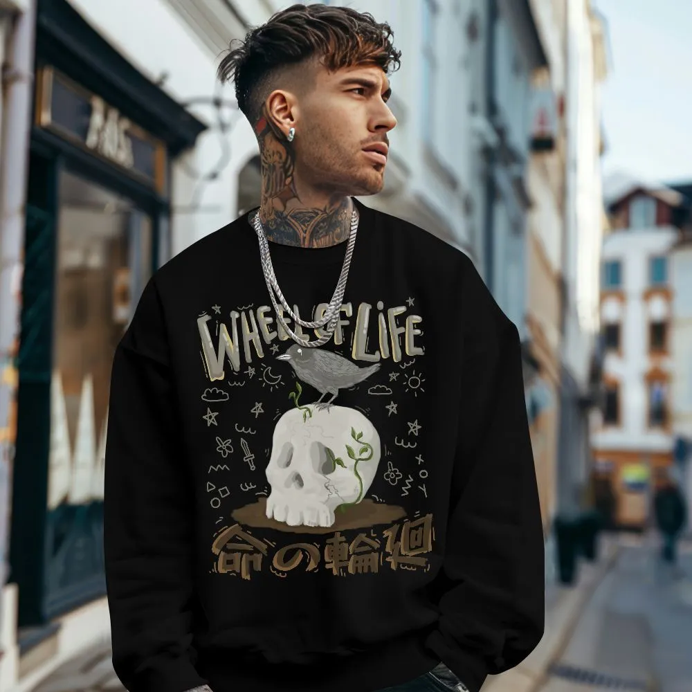 Wheel Of Life Raven Skull Yokai Sweatshirt